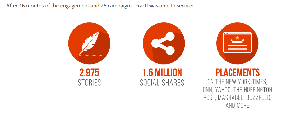 - “While they already had strong brand recognition within the link building and SEO communities, Buzzstream came to Fractl for help with launching large-scale campaigns that would position them as thought leaders and provide long-term value for their brand.”